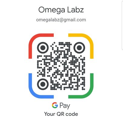 Scan the QR code, it will direct you to GooglePay for payment. After completion email us at: omegalabz@gmail.com with a message containing the script you purchased as well as your payment Email. Once verified, your script will be sent out.